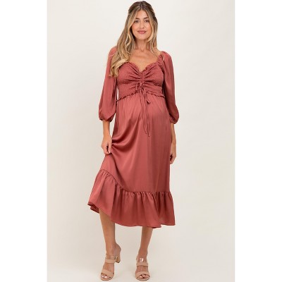 Pinkblush Blue Satin Smocked Fitted Maternity Maxi Dress