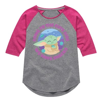 Girls' - The Mandalorian - Come To The Cute Side Shirt Tail Raglan Graphic T-shirt