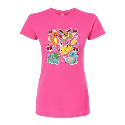 Women's - Pokémon - Valentine's Day Heart Sticker Fitted Graphic T-Shirt