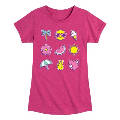 Girls' - Instant Message - Summer Emojis Fitted Short Sleeve Graphic T-Shirt