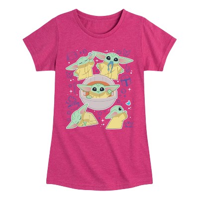 Girls' - The Mandalorian - Grogu Stickers Fitted Short Sleeve Graphic T-Shirt
