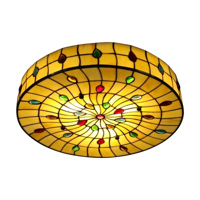 YIYIBYUS 18In 3-Light Retro Flush Mount Ceiling Light with Multicolored Glass Shade