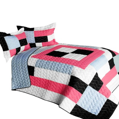Slickblue Full/Queen Patchwork Quilt Set, Reversible, Vermicelli Quilted, Geometric Pattern, 3PC