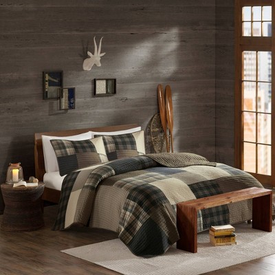 - gray and taupe bedding