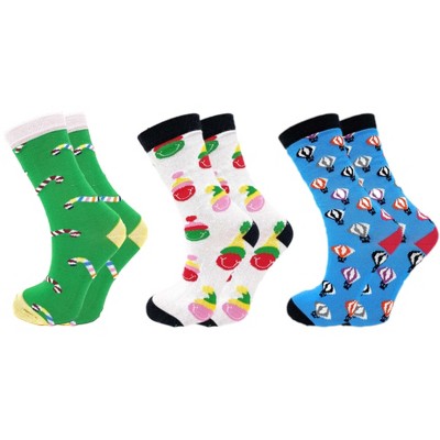 3 Pairs Colorful Fun Crazy Crew Dress Socks – Soft Cotton Blend, Novelty Pattern Socks for Men & Women