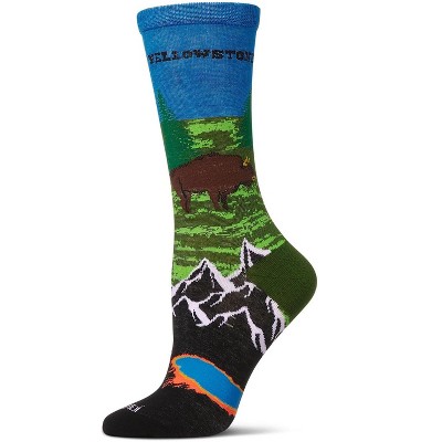 Memoi Women's "Stinky Campsite" Rayon Blend Novelty Crew Sock Ivory Heather 9-11
