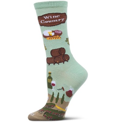 Memoi Women's Wine Country Rayon From Bamboo Crew Socks Mint 9-11