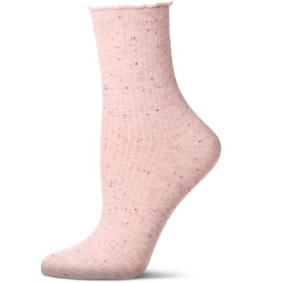 Memoi Women's Vintage Ribbed Multi-Flecked Lettuce Edge Crew Sock