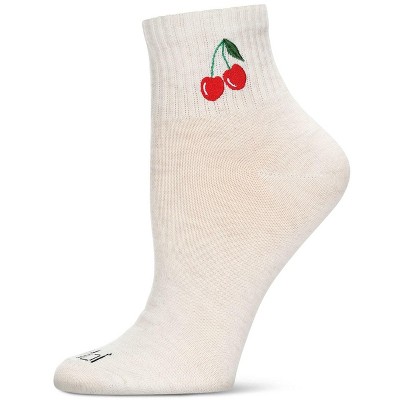 Memoi Women's Cherry Embroidery Athletic Quarter Socks Oatmeal Heather 9-11