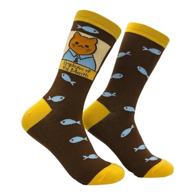 Crazy Dog Women's Employee Of The Month Socks Funny Sarcastic Kitten Graphic Novelty Footwear for Ladies
