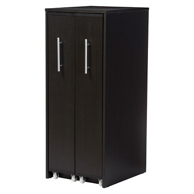 Baxton Studio Lindo Wood Bookcase with Two Pulled-out Doors Shelving Cabinet - Dark Brown: Media Storage, 10 Shelves, 54.25" Height