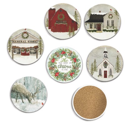 Courtside Market Holiday Plaid Collection 4″ Circle Ceramic Coasters – 6 Piece Set