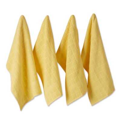Design Imports Solid Terry Windowpane Dishtowel Set 4 Piece, 16X26", Honey Gold Check