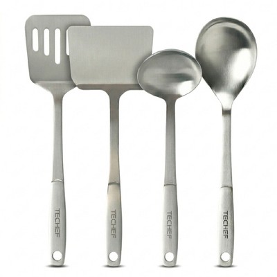 TECHEF 4-Piece Stainless Steel Utensil Set, Compact & Perfectly Sized, Made in Korea with POSCO Steel, Ladle, Spoon, Solid & Slotted Spatula