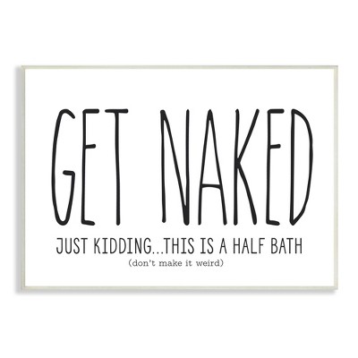 Stupell Industries Get Naked Funny Word Bathroom Black And White Design Wall Plaque Art, 19" x 13"
