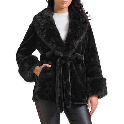INSPIRE CHIC Women's Faux Fur Lapel Removable Belt Winter Shaggy Jacket with Pockets
