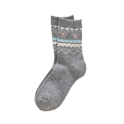 Anna-Kaci Women's 3-Pair Ribbed Knit Crew Socks with Bow and Nordic Pattern Detail - Gray