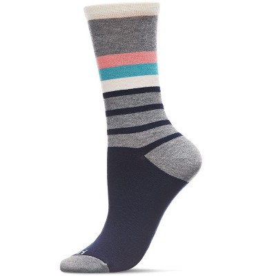 Memoi Leg Stripes Bamboo Blend Crew Sock Navy 9-11