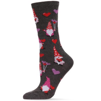 Memoi Gnomes In Love Bamboo Blend Crew Sock Charcoal Heather 9-11