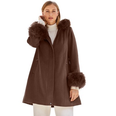 Roaman's Plus Size Wool Blend Coat With Faux Fur Trim