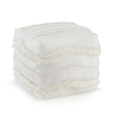Sweet Jojo Designs Fabric Ottoman Pouf Cover Unstuffed Boho Fringe Ivory - Insert Not Included