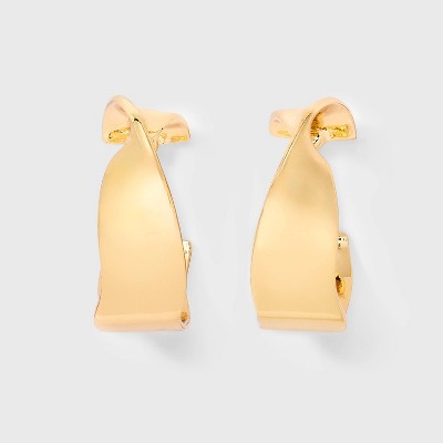 14K Gold Plated Brass Polished Twist Click Top Hoop Earrings - A New Day™ Gold: Nickel-Free, Gift Box Included