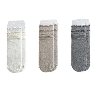 Anna-Kaci 3-Pair Women's Soft Ribbed Crew Socks with Lettuce Edge Cuff Stretch Cotton Feel Everyday Comfort Set