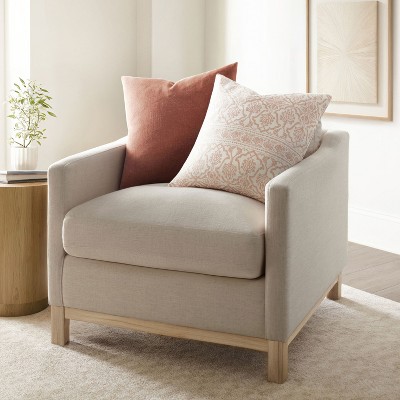 Yarn Dyed Cotton Decor Throw Pillow Cover and Pillow Insert Set in Framed Stripe Pattern - Becky Cameron, Terracotta, 20 x 20