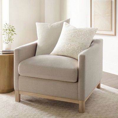 Yarn Dyed Cotton Decor Throw Pillow Cover and Pillow Insert Set in Bengal Stripe Pattern - Becky Cameron, Natural, 20 x 20