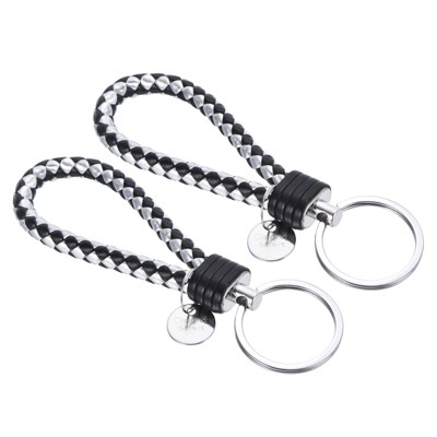 Unique Bargains Braided PU Leather Wallet Keychain with Stainless Steel Key Ring 2 Pcs