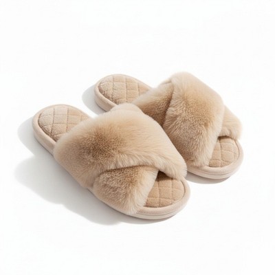 Anna-Kaci Lounge Women’s Plush Crisscross Valentine Slide House Slippers with Quilted Cushioned Footbed- 5.5-6.5, Brown