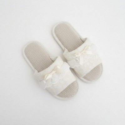 Anna-Kaci Lounge Women’s Valentine Plush Slide House Slippers with Embroidered Bow Detail and Soft Cushioned Footbed- 9.5-10, White