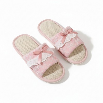 Anna-Kaci Lounge Women’s Valentine Plush Closed Toe Slide House Slippers with Mini Bow Accents and Cushioned Sole- 5.5-6.5, Pink