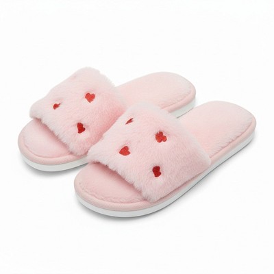 Anna-Kaci Lounge Women’s Plush Slide House Slippers with Valentine Heart Pattern Upper and Cushioned Footbed- 7.5-8, Pink