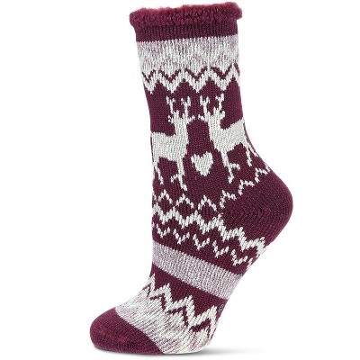 Memoi Women's Reindeer Flake Cozy Warm Thermal Crew Socks Mauve 9-11