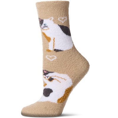Memoi Women's Cat Themed SuperSoft Cozy Crew Sock Tan 9-11