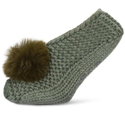 Memoi Women's Pompom Recycled Knit Plush Lined Slippers Moss Green 9-11