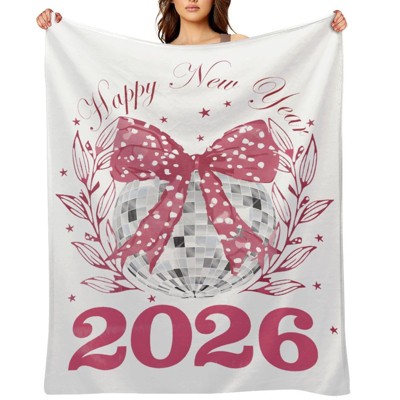 Soscooter 2026 Happy New Year Flannel Blanket Disco Ball Bow Design Soft Cozy Throw Blanket Holiday Home Decor 40x50 inches