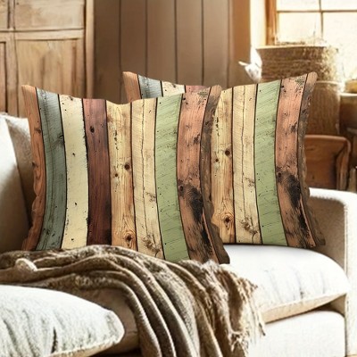Lomsoe 2pcs Vintage Distressed Wood Plank Soft Pillow Cover For Living Room Sofa Bedroom Decor 18x18in.