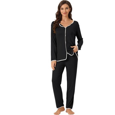 cheibear Women's Long Sleeve Pullover Top with Waist-Elastic Pants Sleepwear Pajama Sets