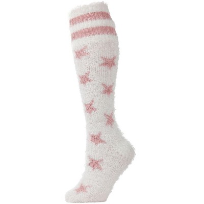 Memoi Women's Stars and Stripes Fuzzy Plush Knee High Socks