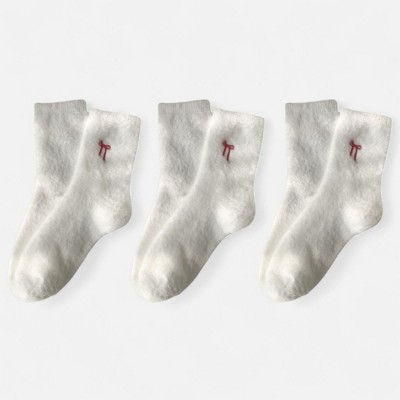 Anna-Kaci Women's 3-Pack Fuzzy Crew Socks with Embroidered Bow Detail Soft Cozy Lounge Sock Set