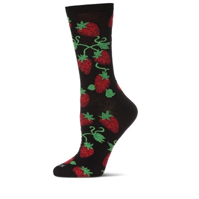 Memoi Women's Strawberry Vines Bamboo Crew Socks Black 9-11