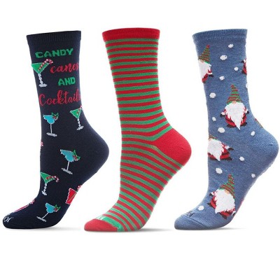 Memoi Women's Santa Hats Holiday Crew Socks Black 9-11