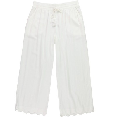 P.J. Salvage Womens Crop Scalloped Hem Pajama Lounge Pants, ivory, Small