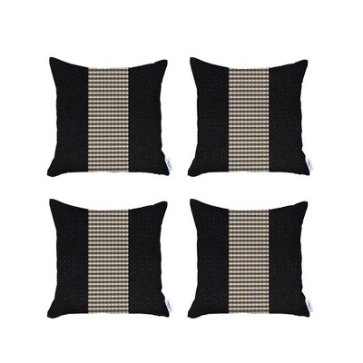 HomeRoots Set of Four 18" Black And Tan Houndstooth Throw Pillow Covers