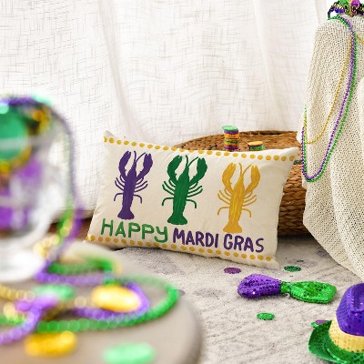 Happy Mardi Gras Crawfish Throw Pillow Cover, 12 x 20 Inch, Only Pillowcase, Single-Side Print