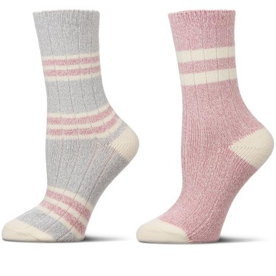 Memoi 2 Pair Women's Ribbed Stripe Buttersoft Crew Socks Alloy 9-11
