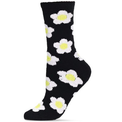 Memoi Women's Daisy Super Soft Cozy Crew Socks Black 9-11