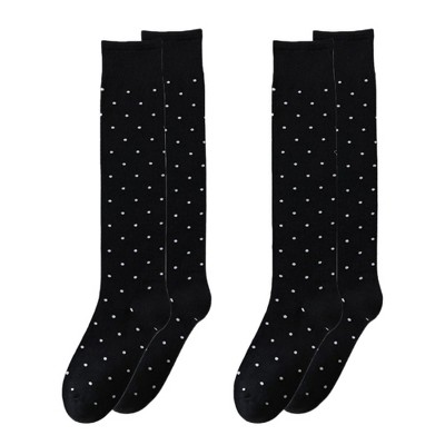 Memoi Women's Inner Dot Eyelet Knee High Trouser Socks